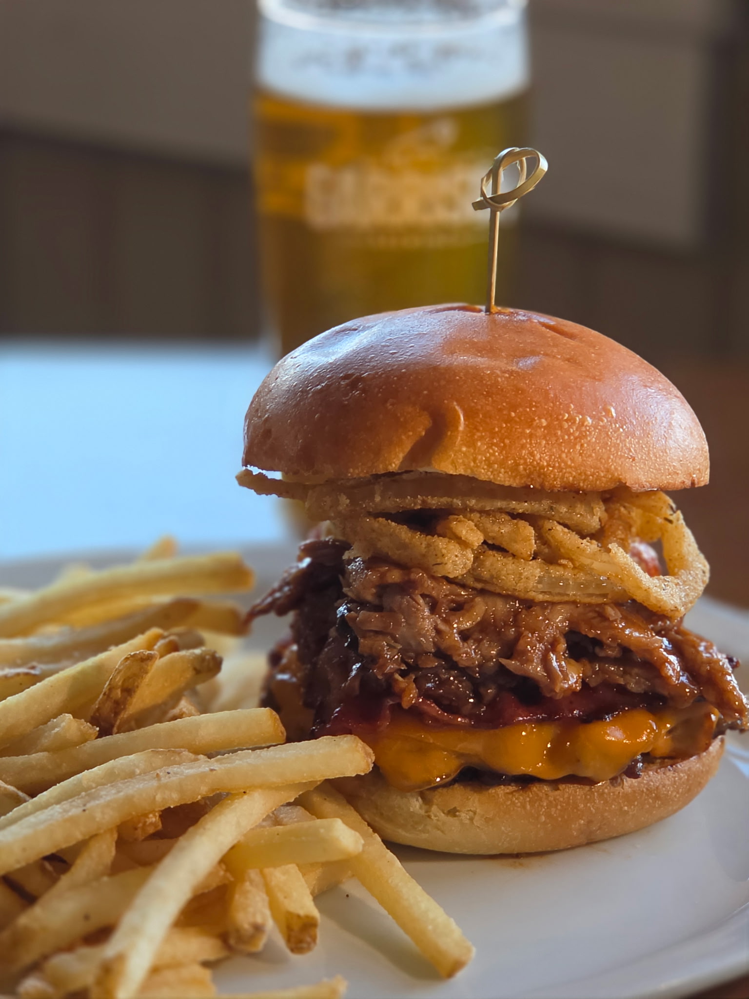 ![]() | ![]() | Two juicy beef patties stacked with tender pulled pork and melted Montreal cheese. Topped with crispy onions, fresh iceberg lettuce, and jalapeños, finished with our rich baconnaise sauce on a toasted bun. Served with Fries. $18 | Windsor |