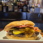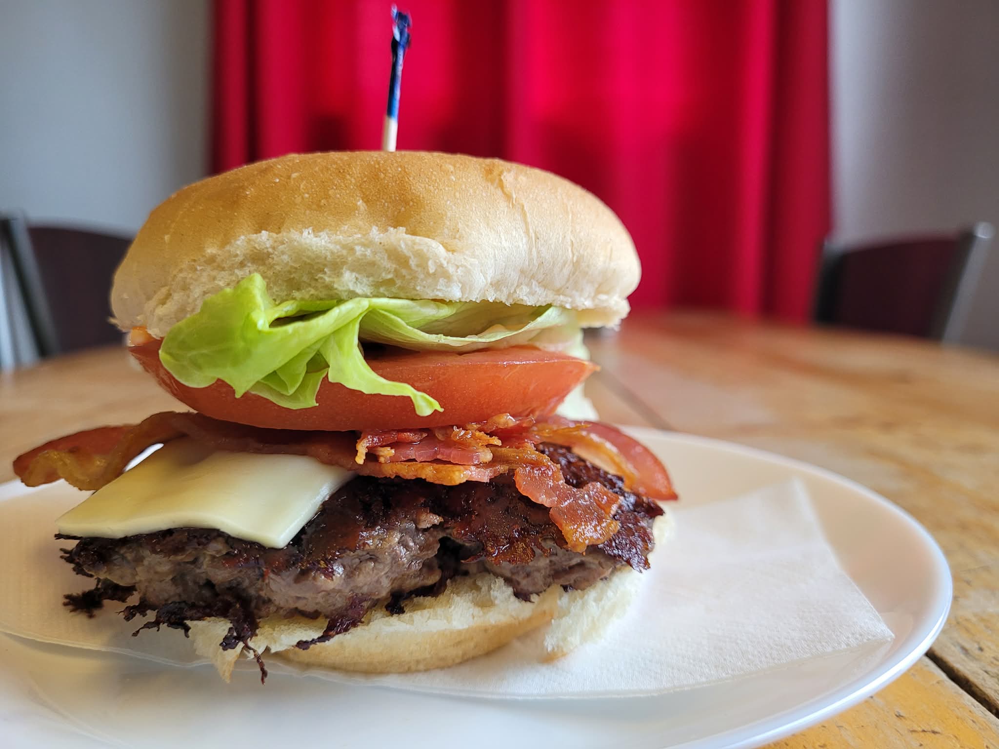 ![]() | ![]() | Toasted burger bun, 7 oz burger patty, 1 slice mild cheddar, 3 slices of Bacon, Spicy mayonnaise, Dill pickle slices, Creamy peanut butter. $22.99 | Kentville |