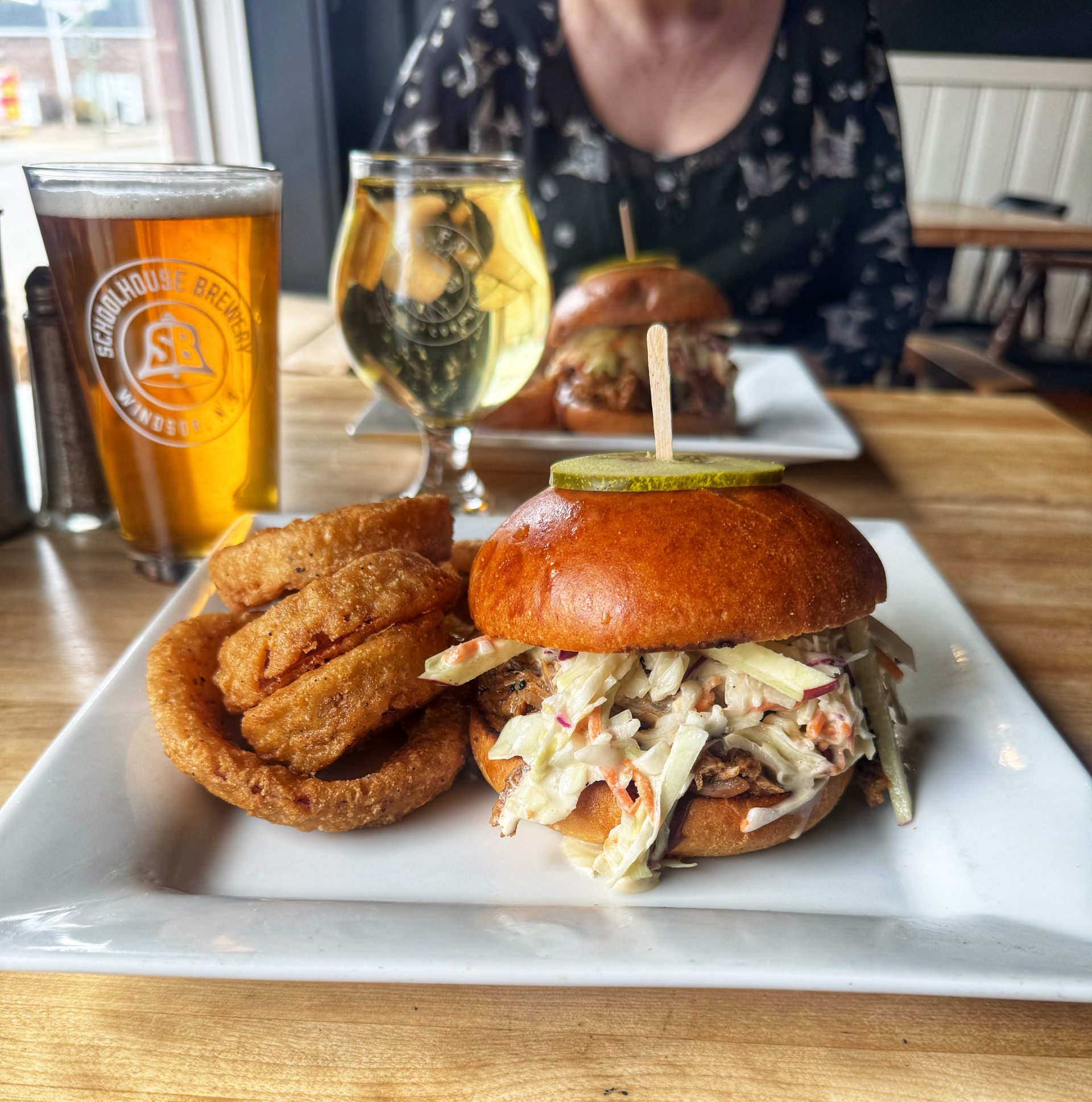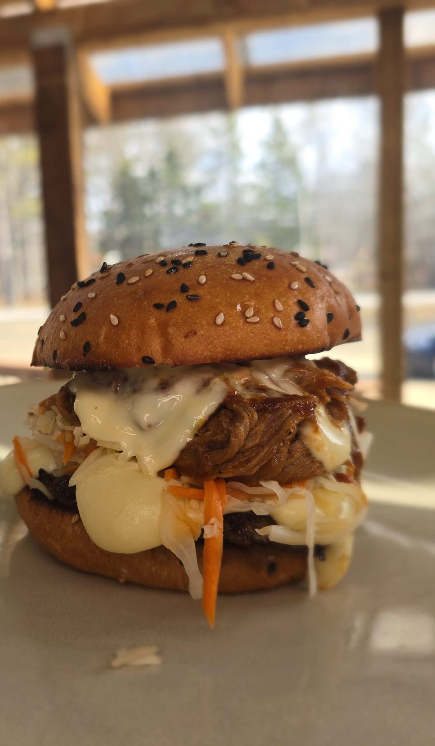 ![]() | ![]() | Our burger this year is one the whole family with love! Roasted pork smothered in BBQ sauce with an apple coleslaw. All on toasted brioche bun. Served with onion rings. $16 Gluten Free Option | Berwick |