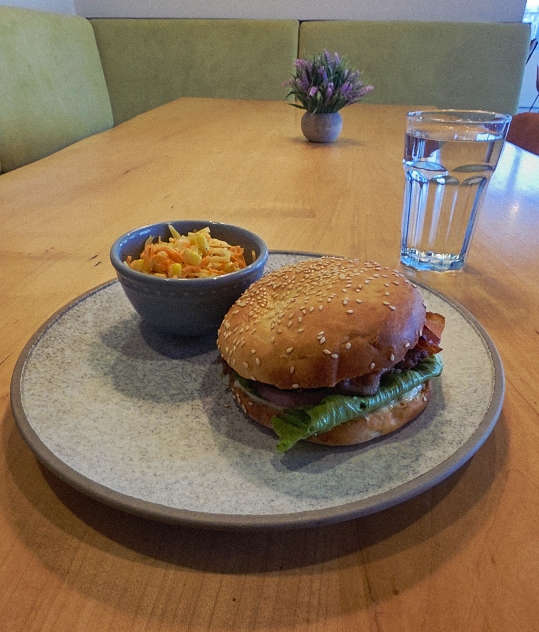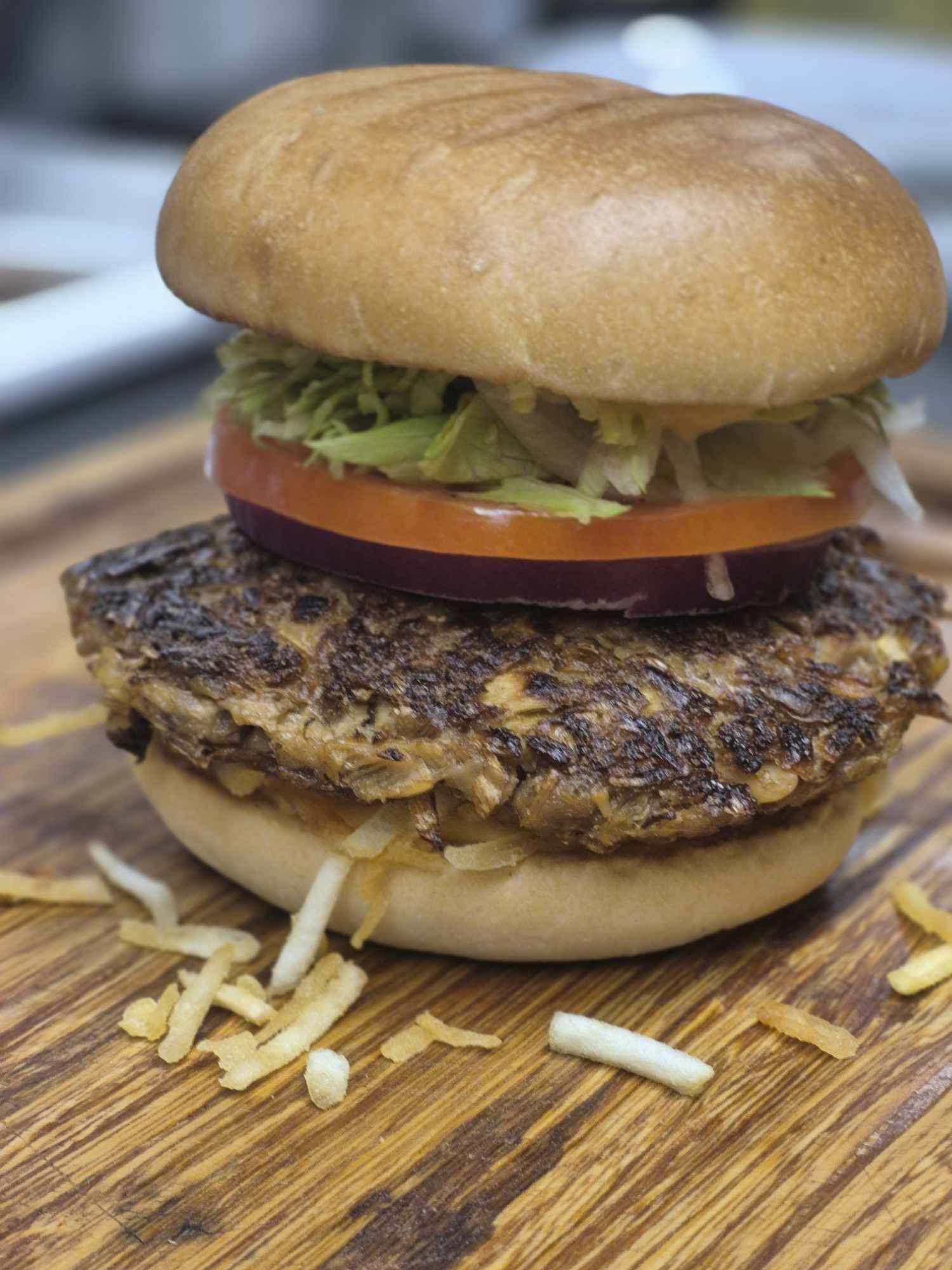 ![]() | ![]() | Introducing our homemade veggie sensation — the Valley Blossom Burger! Made with tender, crispy banana blossom, seasoned and grilled to perfection, this burger is topped with spicy Sriracha Aioli, fresh lettuce, juicy tomato, crisp onion, and crispy shredded potato for the ultimate crunch. Served with coleslaw and fries for a complete, hearty meal. $16.99 Vegan Option | Hantsport |