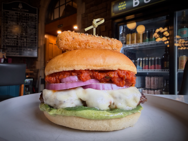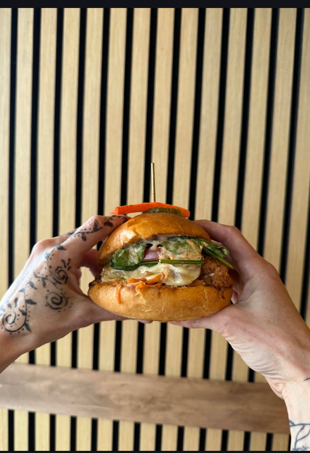 ![]() | ![]() | Brioche bun, 5oz beef patty, mozzarella cheese, Arrabbiata sauce, Pumpkin pesto aioli, Spinach, Red onions, topped with a mozza stick. $23 Vegetarian & Gluten Free Options Vegan Option without cheese | Kentville |