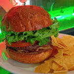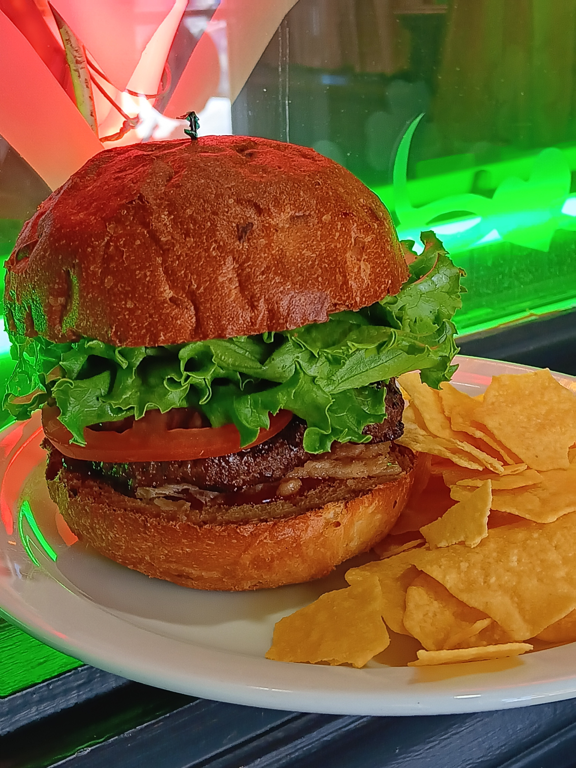 ![]() | ![]() | A seasoned beef patty stacked with a smoky chorizo patty, topped with pepper jack cheese, avocado, lime, mayo, crispy jalapeños, lettuce, and tomato. Served with fries. $20 Gluten Free Option | Windsor |