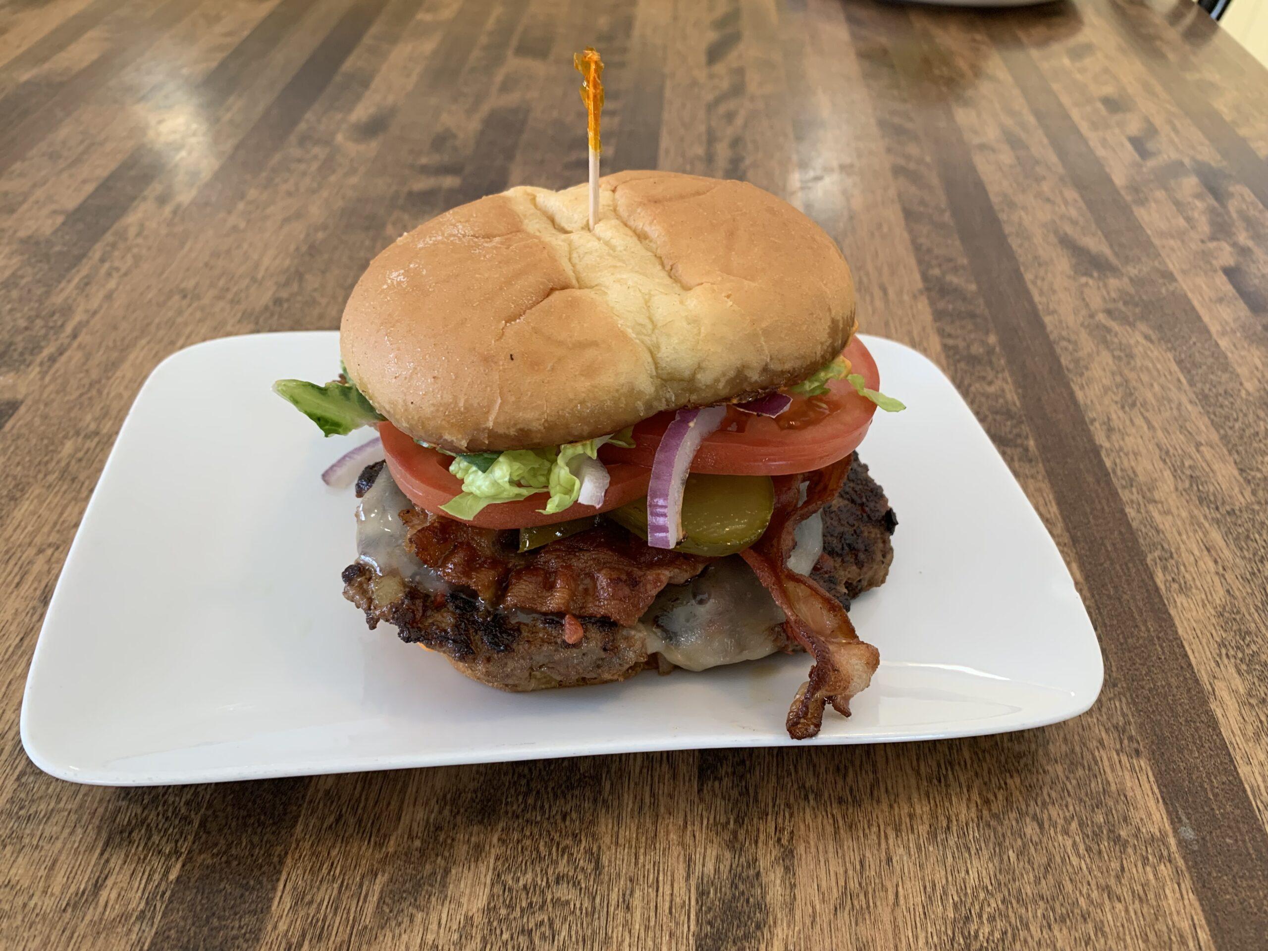 | A juicy 4oz beef patty, perfectly grilled and served on a toasted bun. Topped with crisp shredded lettuce, ripe sliced tomatoes, and melty cheddar cheese. This burger brings it all together with our signature housemade beer mayo, adding a unique and rich flavor. A true taste of Smokehouse goodness in every bite! $12 + tax | Eat In Take Out | Berwick | ||